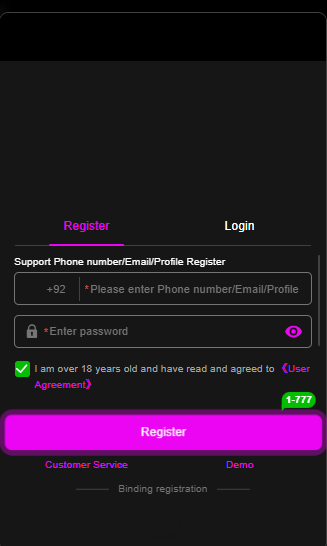 - Tap “Register” or “Sign Up.”